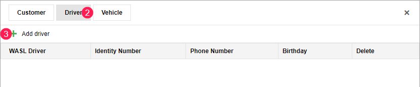 In the table of customers, click on the row of the customer for whom you want to register a driver.
