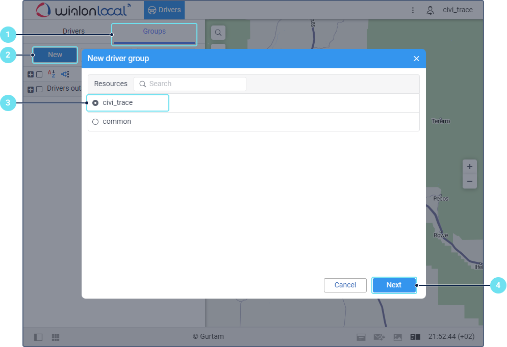. To quickly find the required driver group, use the dynamic filter or the filter by property (assigned or not assigned drivers) or by resource.
