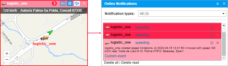 In the minimap header, you can see an icon indicating the number of unread notifications. Click on it to view them. Here you can read and delete notifications as in the Online notifications window. To return to the initial mode, click on the icon again. Minimaps are not synchronized with the Online notifications window, therefore reading or deleting notifications in a minimap does not lead to any changes in the window of online notifications.