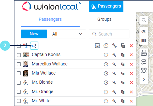 On the Passengers tab, click on the icon