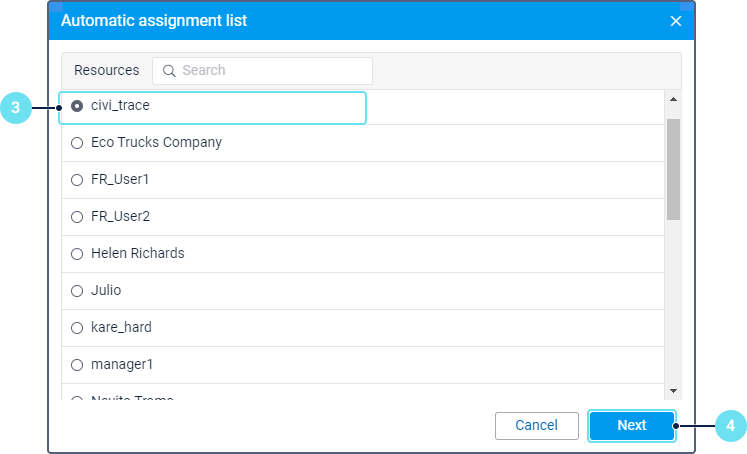 Select the resource for the passengers of which you want to configure automatic assignment. To find out which passengers belong to a certain resource, apply filtering by resource to the list of passengers (displayed to the right of the New button).