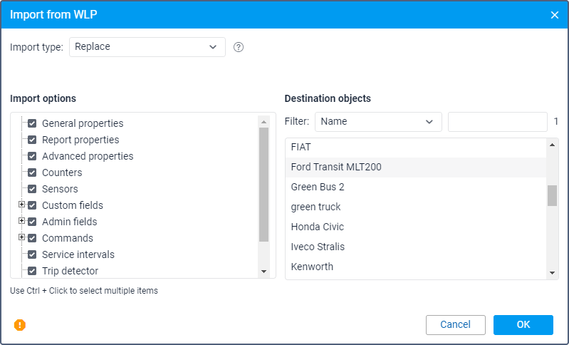 Using the Export to file button, you can save the selected data from the unit properties to a separate file in the WLP format. For a detailed description of the function, go to the Export to WLP page.
