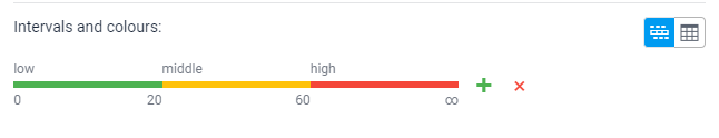 In this section, you can create sensor value intervals, select a colour, and specify a caption for each interval.