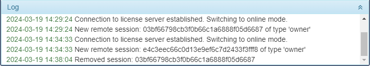 A log is located at the bottom of the screen. It displays information about current events that take place in Wialon Local. For example, about starting or stopping it, the availability of updates, the installation of components, etc. When the page is reloaded, all events are removed from the log.