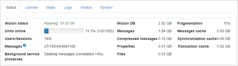 PropertiesThe total size of all elements and their properties in the Wialon database.