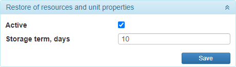 In this block, you can enable the function of restoring resource contents and unit properties in the management system in case they are changed or deleted.