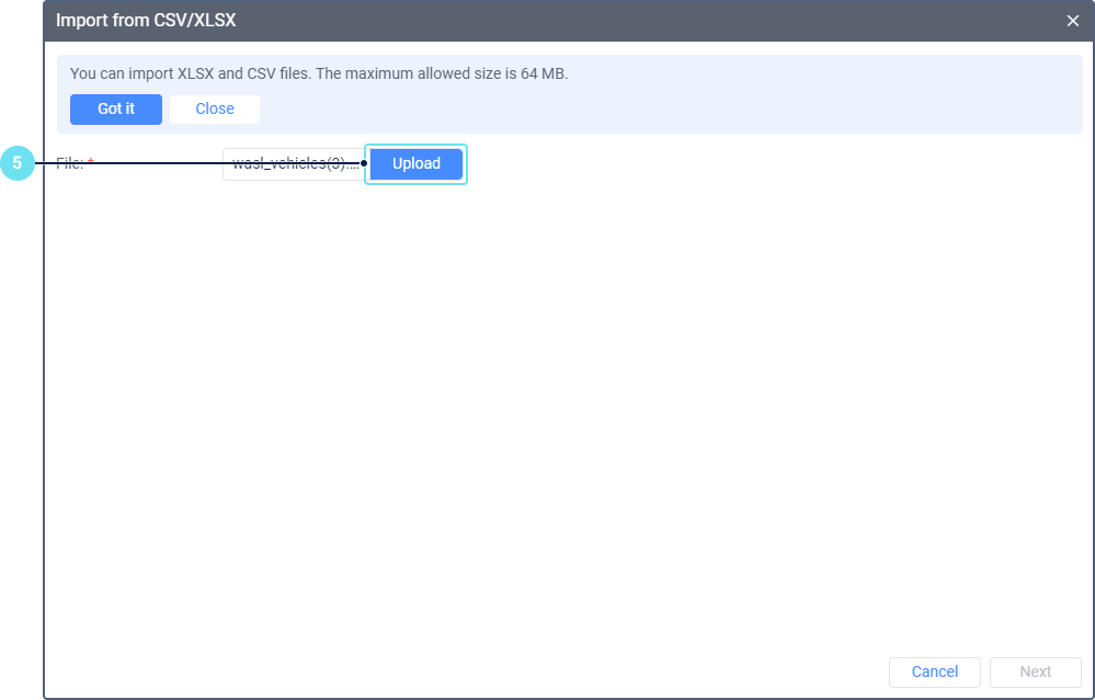 You can register several vehicles at once using the Import feature. It allows you to import vehicles in bulk from a CSV or XLSX file.