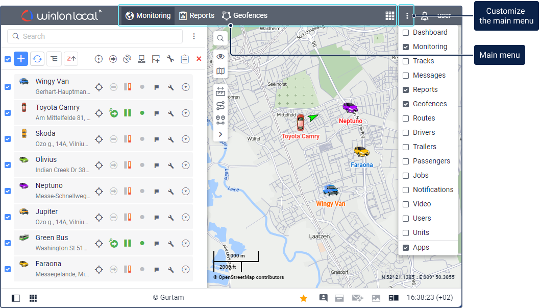 | Locator | Allows you to create temporary links so that unregistered users can track units without having an account (see more). |