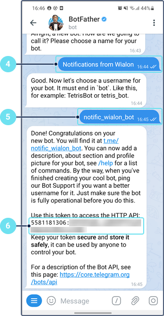 In the same way, you can configure sending notifications to a public group. In this case, add the created bot to the group as a member.
