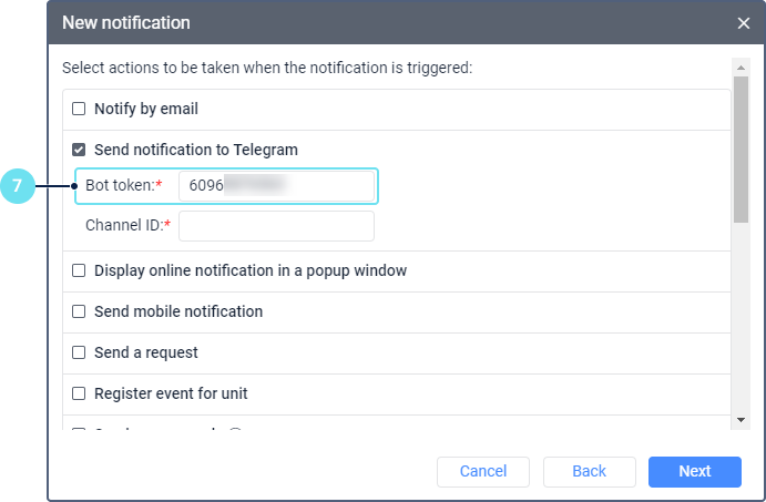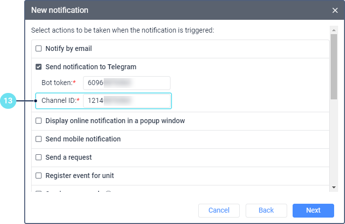 From the resulting code, copy a numerical value after “chat”:{“id”: and paste it into the Channel ID field in the notification properties in Wialon.
