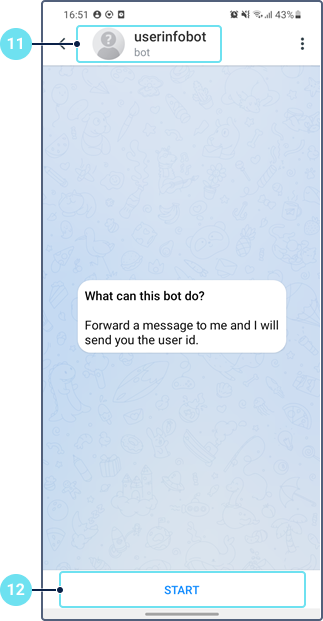 Tap Start. After that, the user ID is sent. To find out the ID of another user, send any message to this bot on behalf of the required user.
