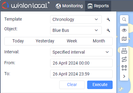Use buttons Today, Yesterday, Week, Month to select a pre-set interval. If you press one of those four quick buttons, the report launches immediately (there is no need to press Execute).
