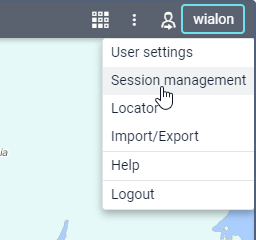 To open the window, click on the username in the upper-right corner and select the Session management item.