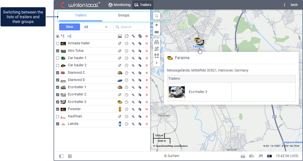To access the Trailers tab, the Trailers service should be enabled in the account properties. To work with trailers and their groups, the user should have the Create, edit, and delete trailers access right to the resource of the account.