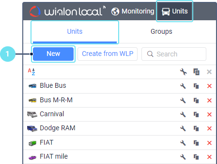 1. Select the Units mode using a switch and click New.