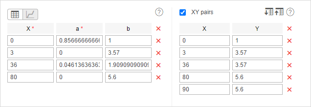 Note that the last pair of points is how the system calculated before (the fuel consumption was considered constant for a speed above 80 km/h). You cannot use this method and change the set of points. Also ‘3’ in this example is the minimum speed from the unit’s trip detector, consequently, this parameter can be different for your unit.