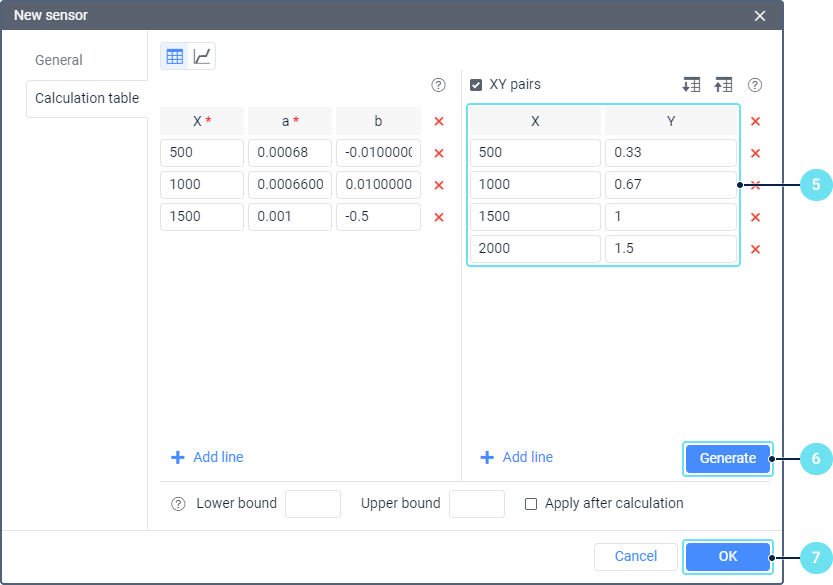 In the calculation table, enable the XY pairs option and configure them as follows: