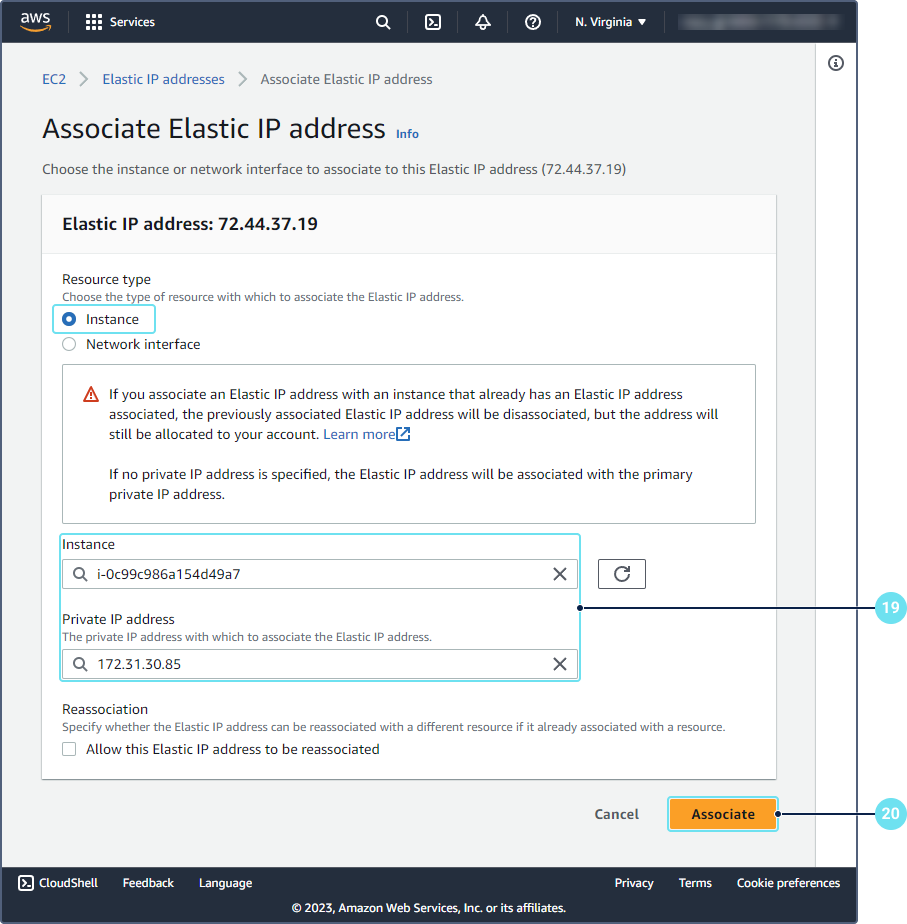 In the Actions menu, select Associate Elastic IP address.