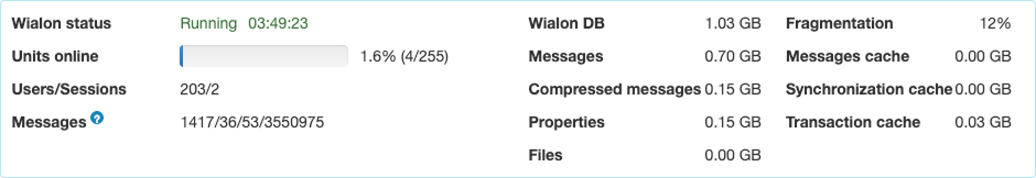 | Compressed messages | The total size of compressed messages in the Wialon database. |