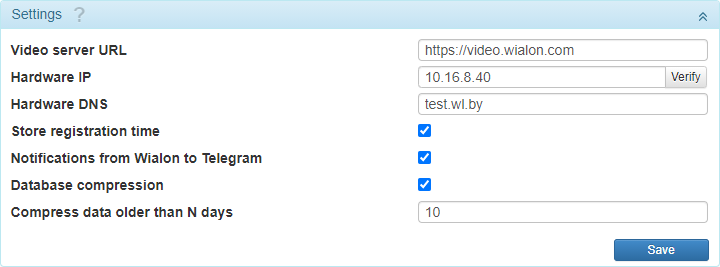 | Hardware DNS | The domain name of the server to which the data from the units should be sent. It is displayed in the properties of all units in the Server address field. |