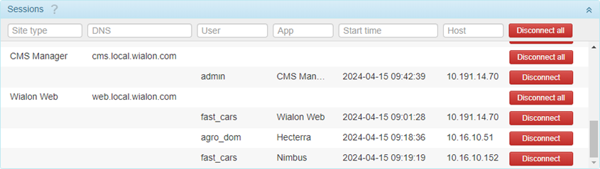 The Disconnect and Disconnect all buttons stop the selected session or all the sessions respectively.