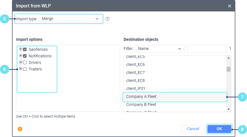 In the import window that opens next (the mechanism of restoring is similar to import from WLP), select the import type.