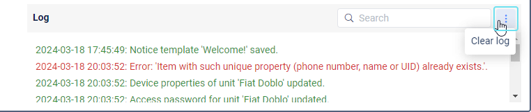 To delete all the log entries, click on the icon