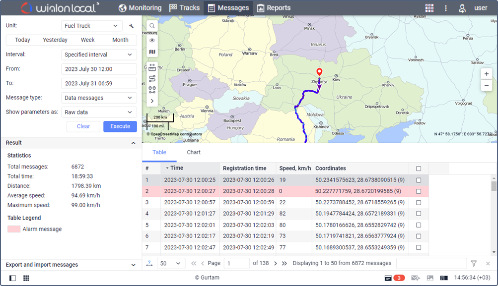 Data messages are messages sent to the server from the unit device. As a rule, they contain information about the unit speed and location at the time of sending, the message generation time, and other parameters depending on the device type.