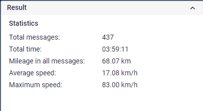 | Total time | The interval between the first and the last message with coordinates from the unit. |