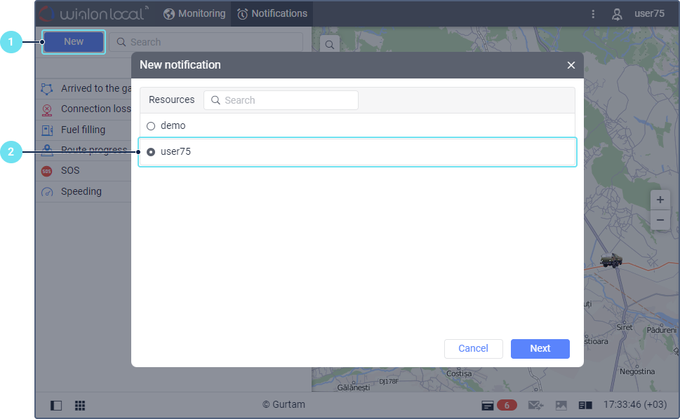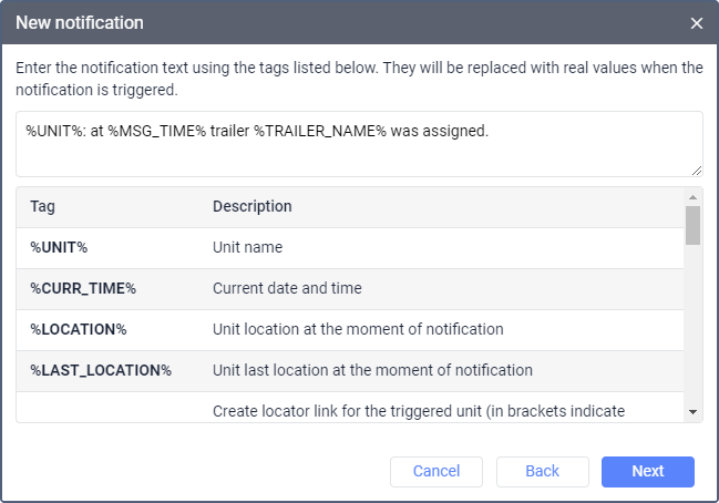 Select the unit or units for which you want to create the notification. The units are selected in the same way as when creating jobs.