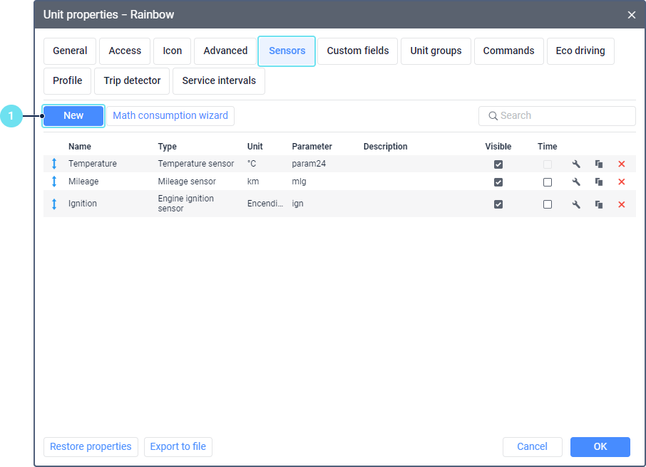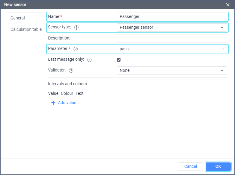 - For all the units, to which you want the passengers to be assigned automatically, create a sensor of the Passenger sensor type. The sensor parameter depends on the device you use and its settings.