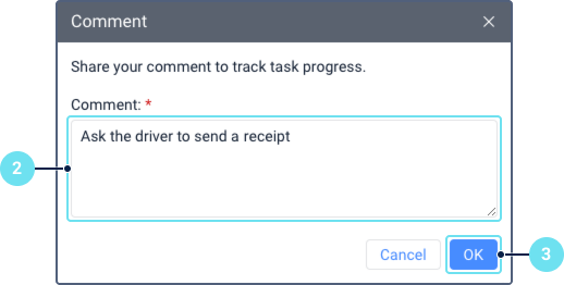 To leave a comment on the task, follow the steps below.