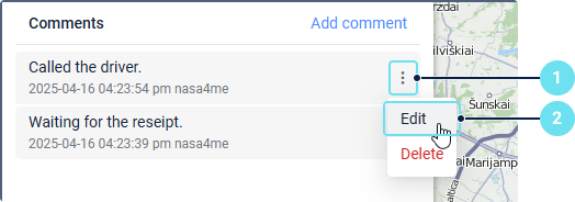 After that, the comment is shown in a separate block. In addition to the comment text, the block contains the date and time it was added, the name of the user who left this comment, and the menu () from which the Edit and Delete options are available.