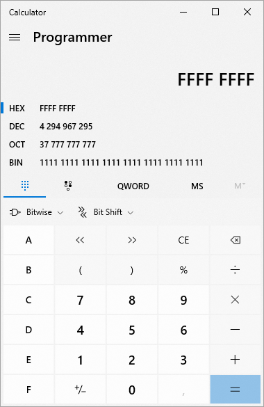 - Switch to hexadecimal mode (HEX) and count the number of characters in the resulting value. If the number of characters is not 2, 4, or 8, then round it up (for example, 5 should be rounded up to 8). In the image below, the value consists of 8 characters.