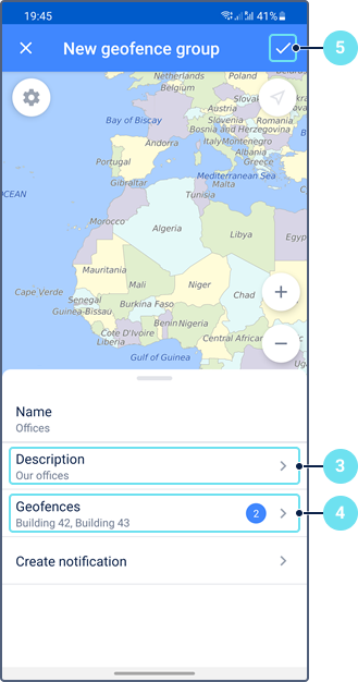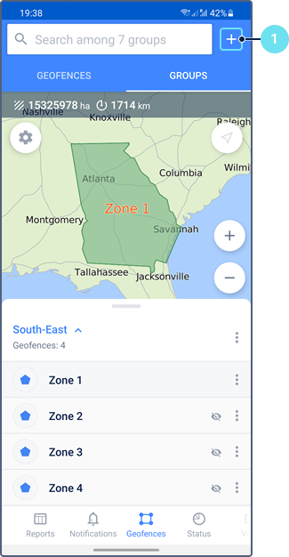 To open the menu of the geofence group, tap the icon