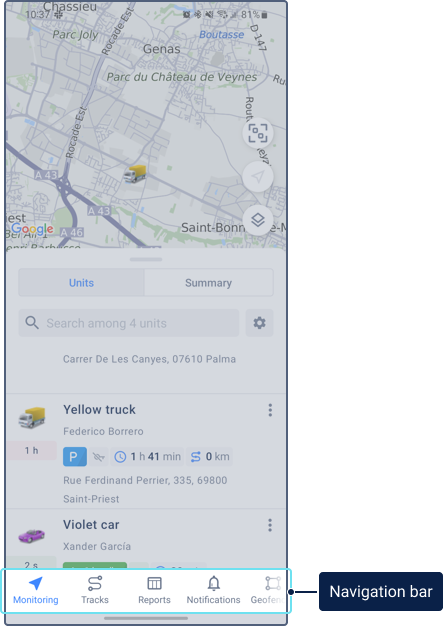 The Reports, Notifications and Geofences are displayed if the Reports, Notifications, and Geofences services are activated for the account respectively.