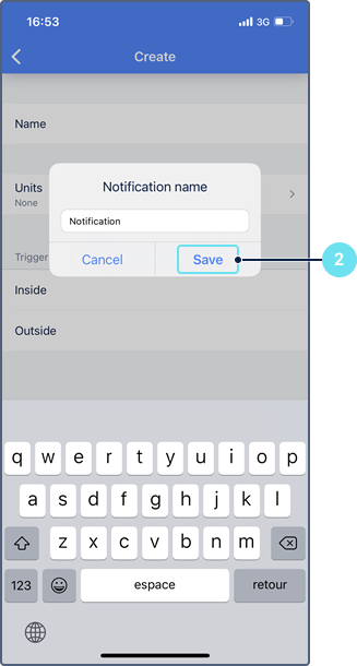 - Type in the name of the geofence and tap Save.