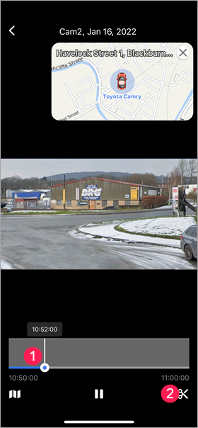 Using the sliders on the left and right, set the duration before and after the event in seconds. The minimum allowed duration is 2 seconds, and the maximum one is 60 seconds. The duration of the saved excerpt is equal to the sum of the seconds before and after the event (the position of the white slider) and is displayed below the timeline.