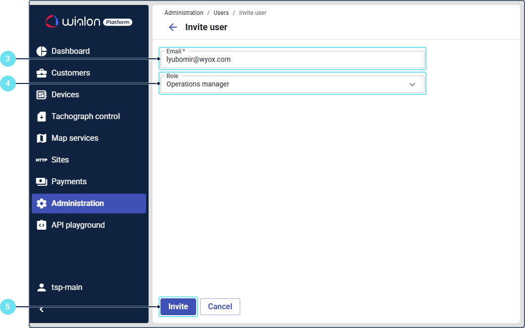 Inviting users with specific roles to Wialon Platform