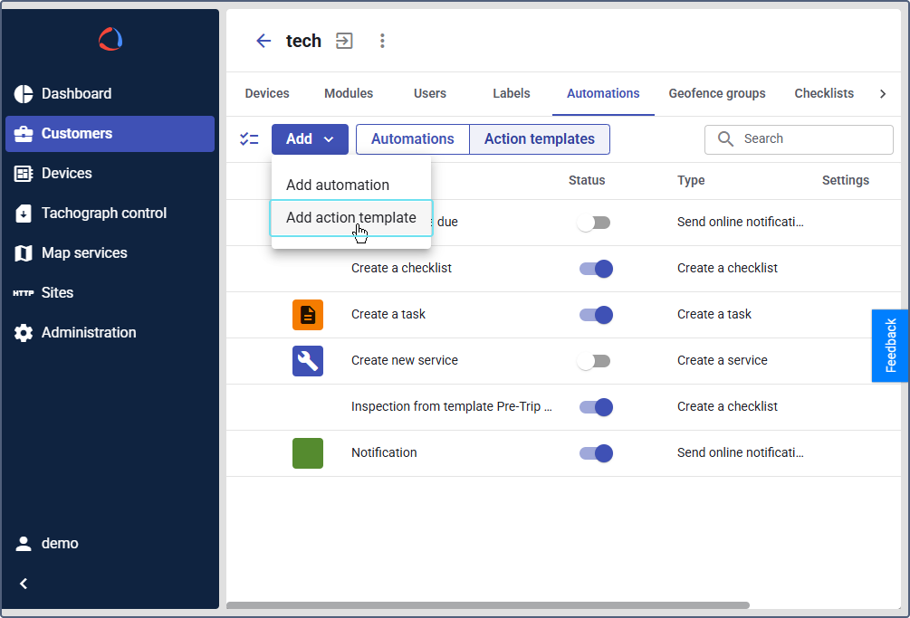 When linking the action template to the automation, in the Text field, use the available placeholders to include dynamic information in the text, such as speed, time, and geofences.