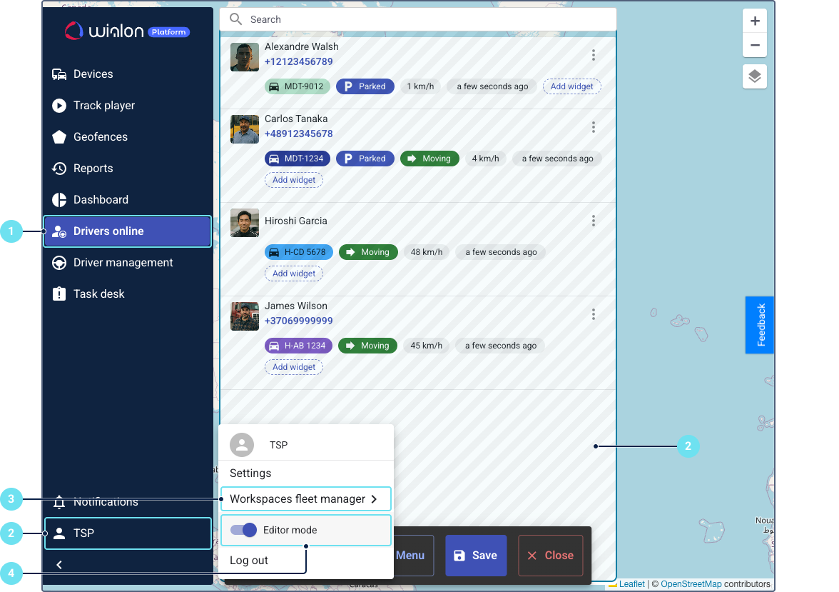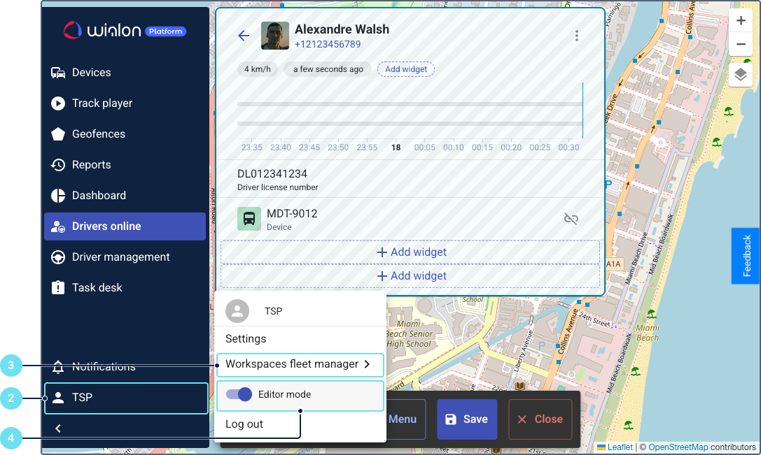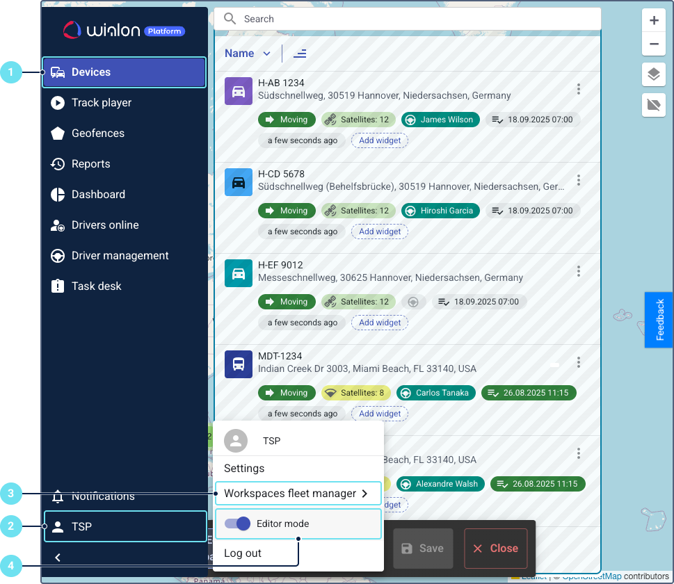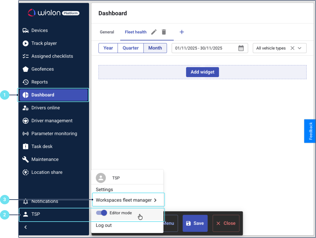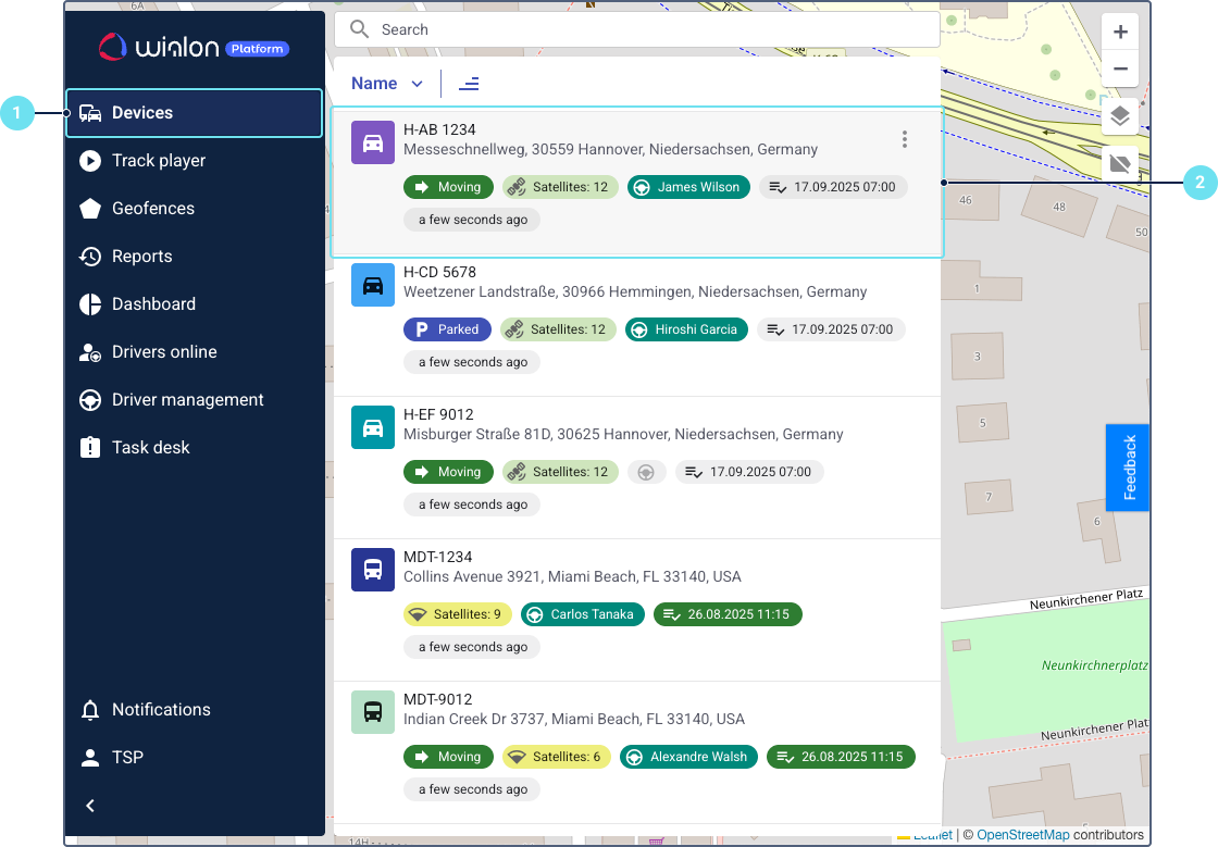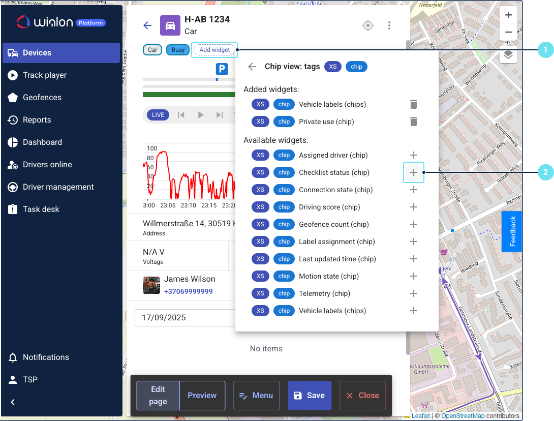 Wialon Platform FleetSpace allows you to customize the information displayed in the device list, device details, driver list, and driver details pages by adding and configuring various widgets. These widgets provide quick access to key data, analytics, and actions relevant to your fleet operations.