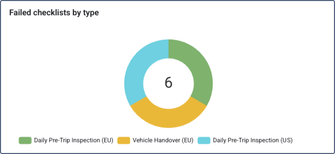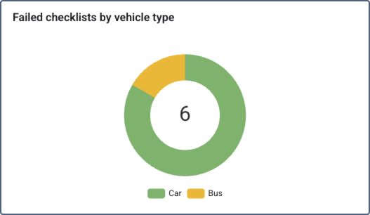 - Failed checklists by vehicle type (pie chart): Shows the distribution of submitted checklists with failed items, categorized by vehicle type labels.