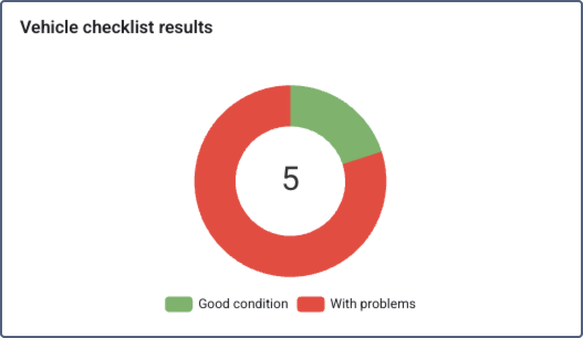 - Vehicle checklist results (pie chart): Provides a summary of vehicle conditions based on submitted checklists. It categorizes vehicles into two groups: those in good condition (all checklist items passed) and those with problems (at least one failed item).