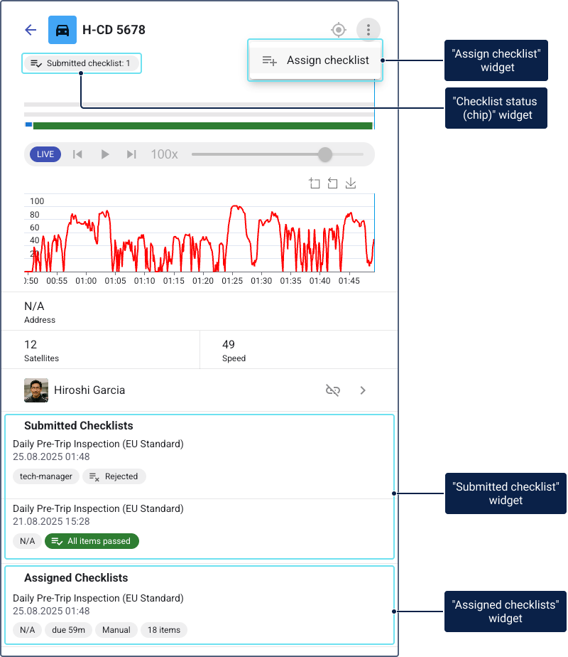 - The Assigned checklists list to see all new checklists assigned to the driver.