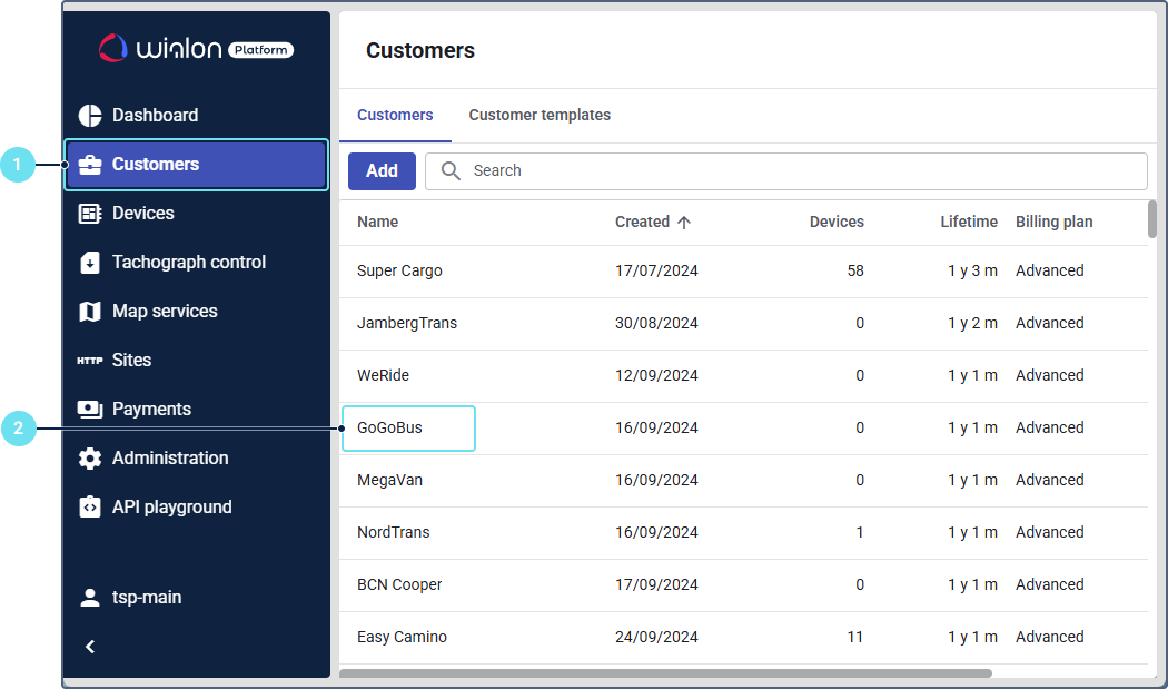 - In Wialon Platform Studio, open the Customers page.