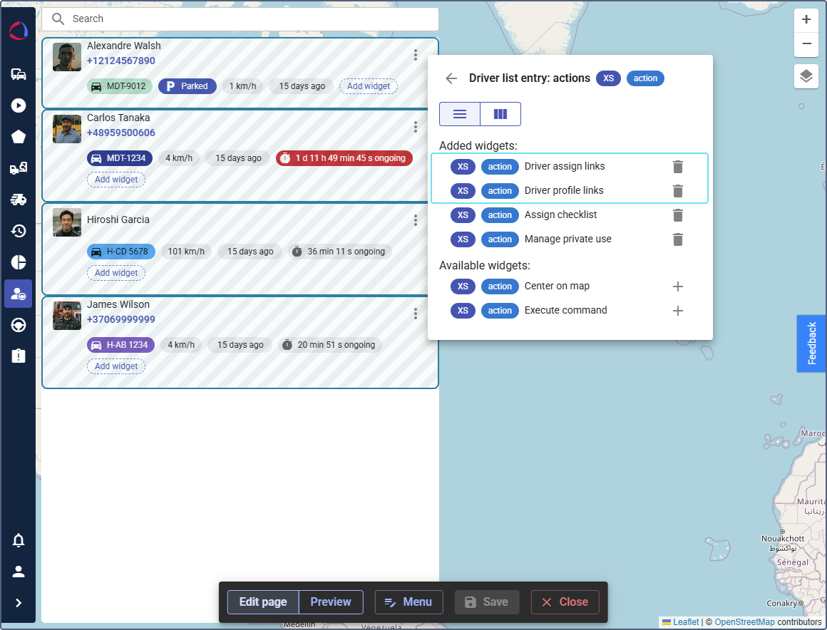 Driver assign linksorDriver profile linkswidgets can be added to theactionsslot.