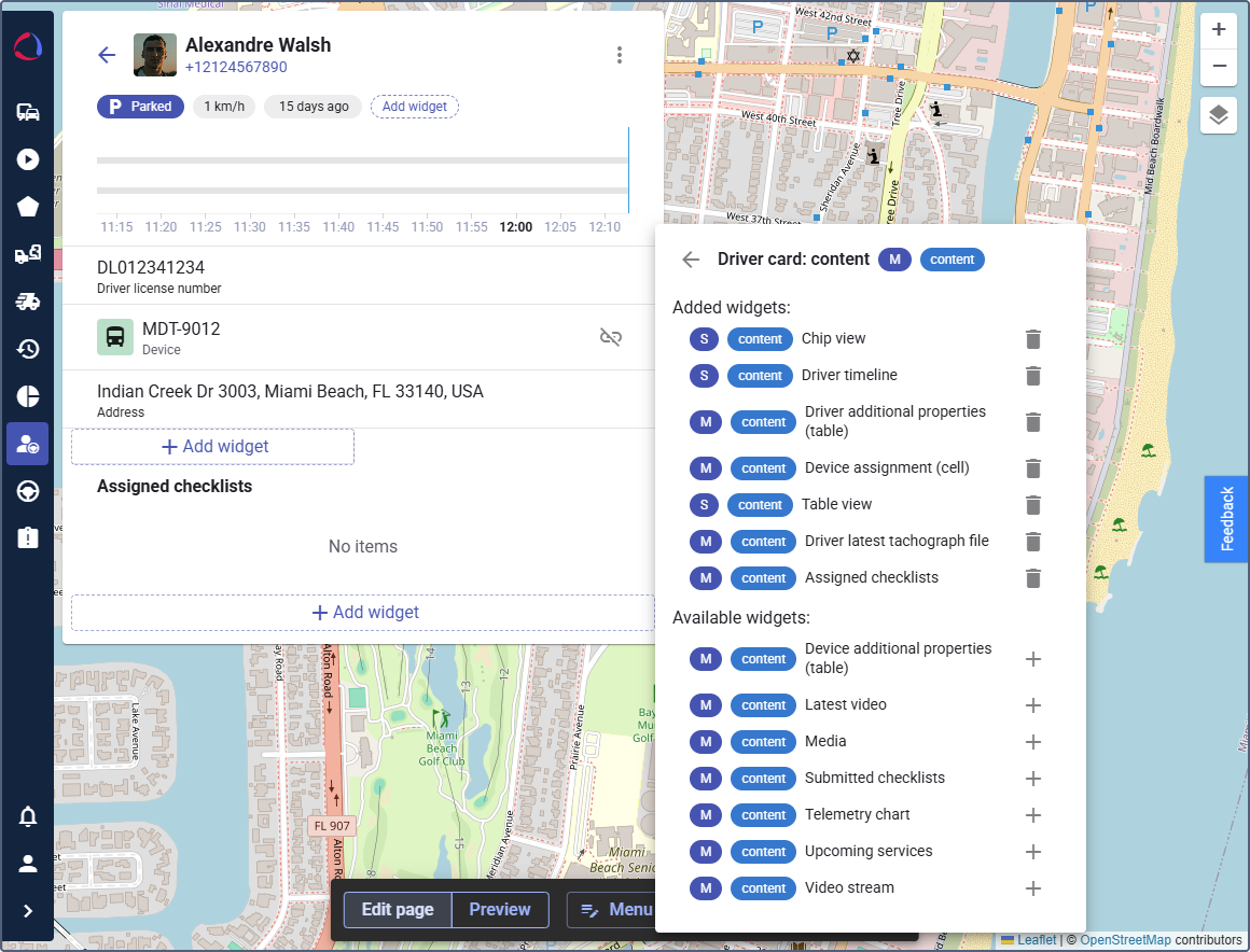 By following these steps, you can add and customize various widgets to fill out the driver’s profile in both views.