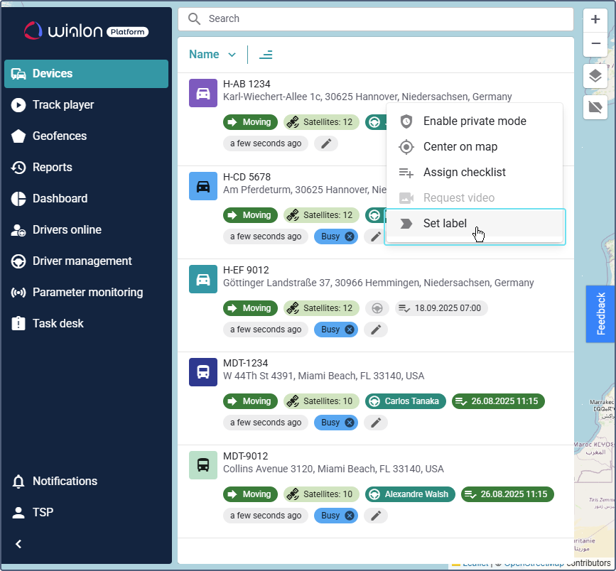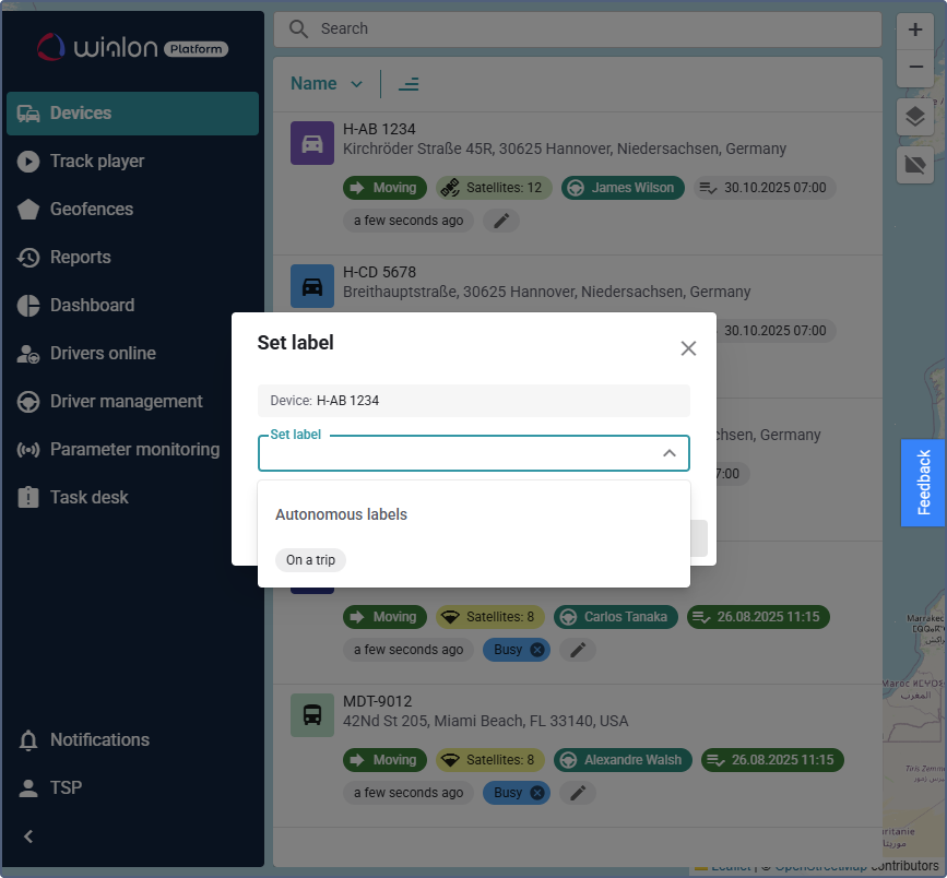 You have now successfully added the label chip, allowing you to monitor vehicle statuses in the device list.