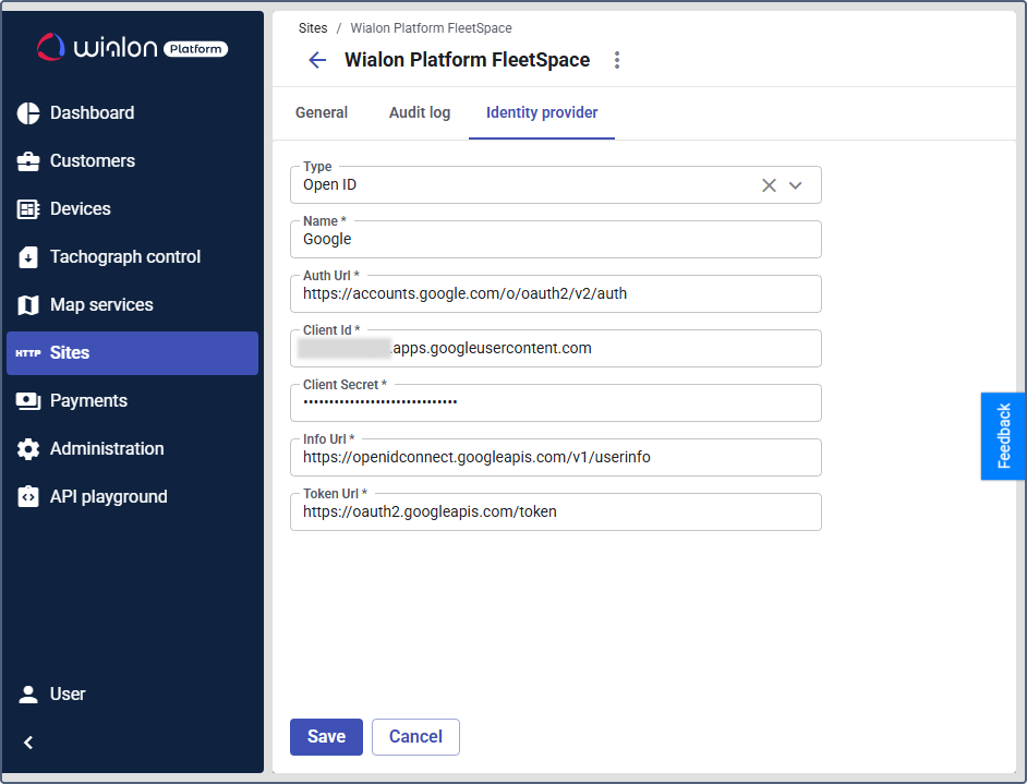 This step is for the service providers and administrators to set up the identity provider within Wialon Platform Studio.
