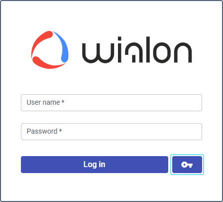 On the Wialon Platform FleetSpace login page, you will now see a key button next to the standard Log in button. Click the key button to log in using your connected identity provider account credentials instead of the username and password.